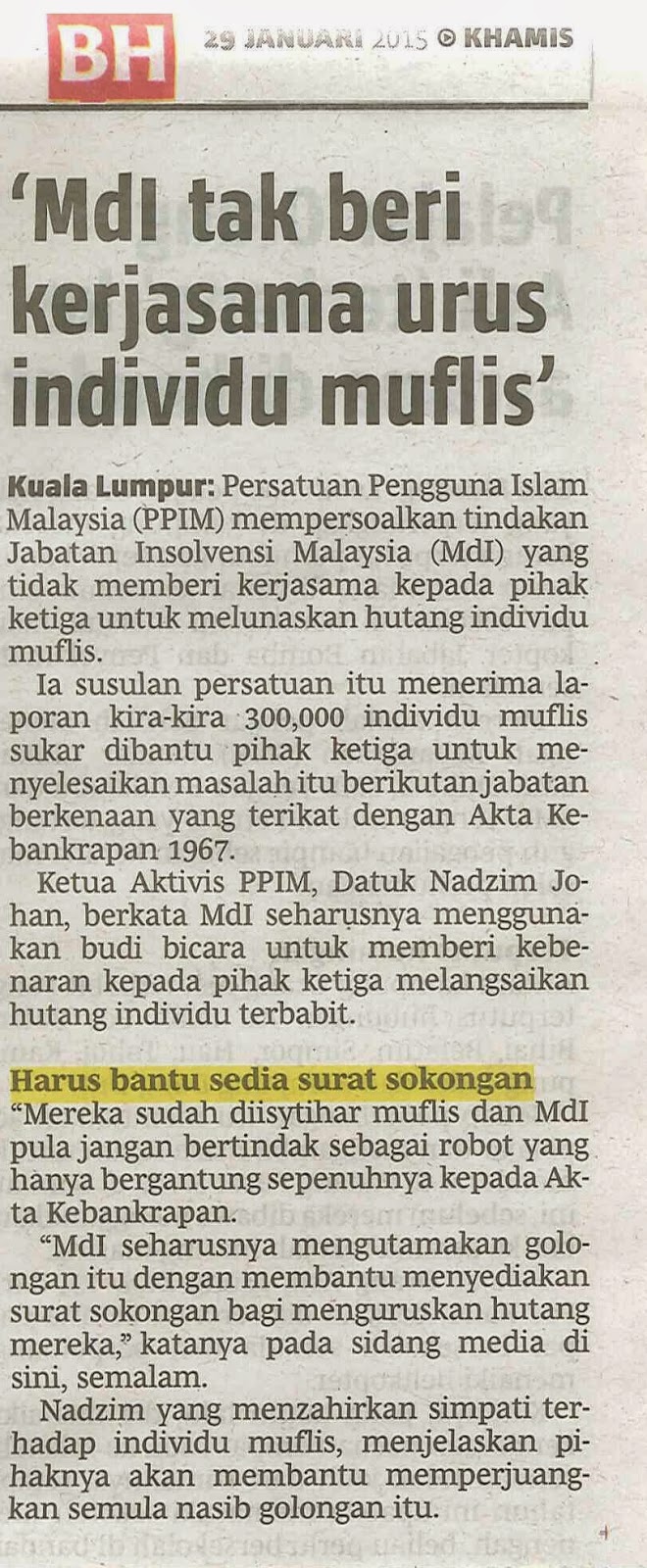 2444 Berita Harian 29 01 2015 Mdi Tak Beri Kerjasama Urus Individu Muflis Ppim